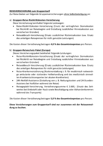 Zur Reise bieten wir folgende Gruppenversicherungen ohne Selbstbeteiligung an: